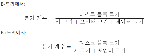 - (하단 이미지) 분기 계수(하나의 노드가 가질 수 있는 최대 자식 노드의 개수) 수식 비교